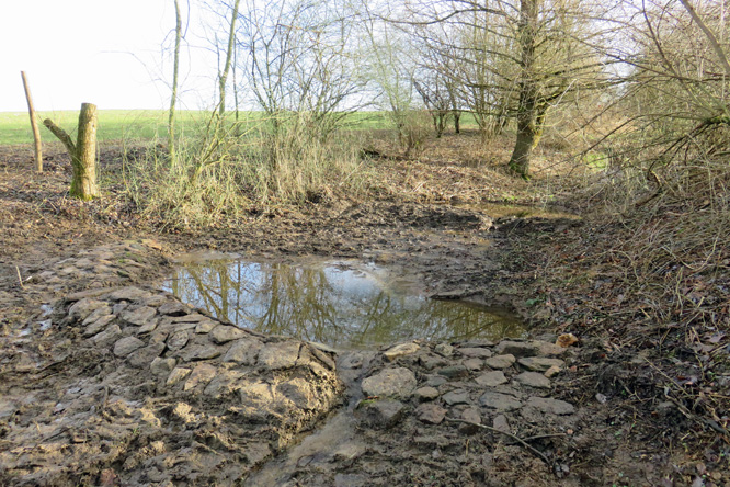 Geplant ist die Entnahme von Einzelbäumen im Teichrandbereich sowie der Weidengruppe im Teichkörper, die Sanierung der zwei verbliebenen Kopfweiden sowie das Nachstecken von Kopfweiden. Die Gehölzpflege verringert den Laubeintrag und stellt eine Besonnung des Teichkörpers für eine optimale Laichentwicklung sicher. Nach der Schlämmung des Teichkörper und der Rodung von Baumstubben, wird dieser an der Sohle und am Damm mit Lehm abgedichtet. Die Lehmdichtung am Damm wird mit einer Schüttung aus Kiessand gesichert. Die noch rudimentär vorhandene Nassstelle oberhalb des Tümpels wird als Vorstau ausgehoben und dient als Schlammfang. Zwischen den zwei Stauflächen wird eine natürliche Überlaufmulde modelliert. Das Überlaufrohr wird mit einem Gitter o. ä. gesichert, um einen sicheren Ablauf im Hochwasserfall zu gewährleisten.