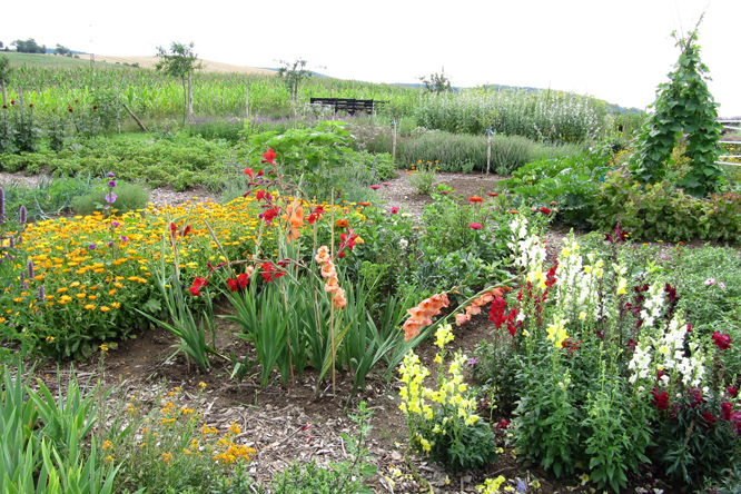 den ersten Blick erscheint der Garten wie ein Durcheinander von Zier- und Nutzpflanzen, da er in Mischkultur bewirtschaftet wird. In