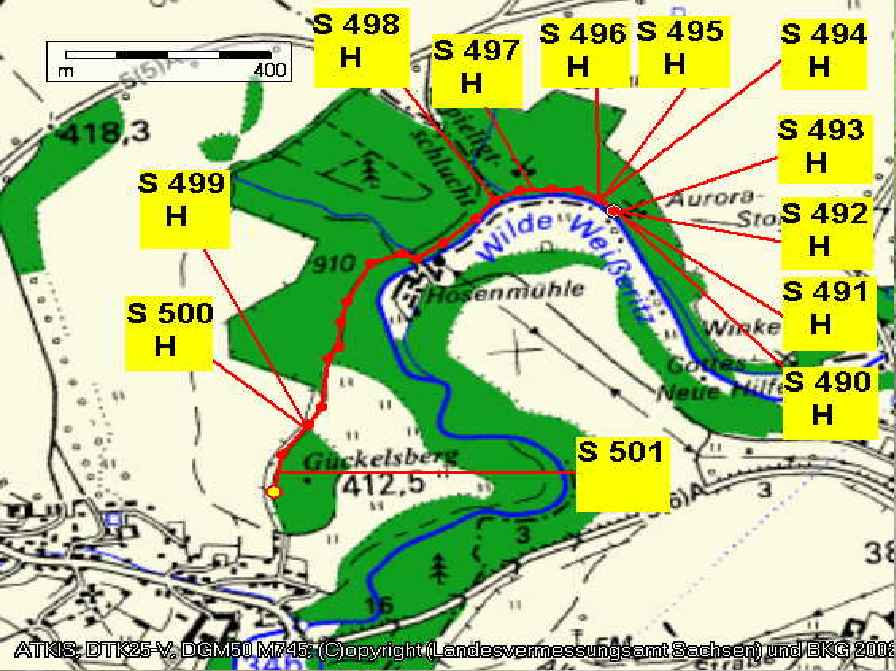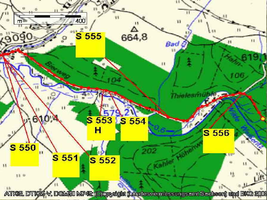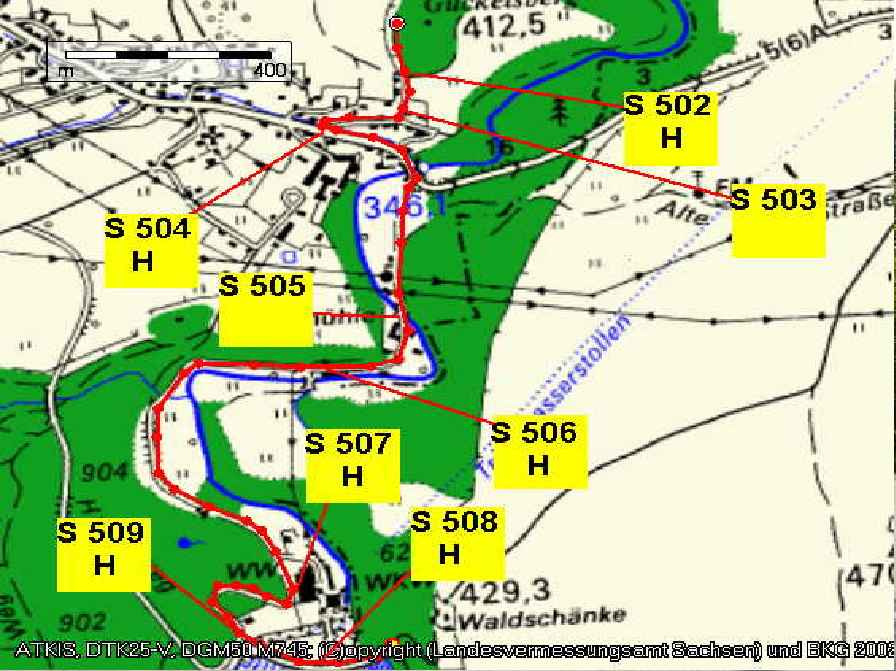 Edle Krone – Dorfhain – Klingenberg – Talsperre Klingenberg – Beerwalder Mühle Röthenbacher Mühle – Talsperre Lehnmühle – Schönfeld – Seyde – Rehefeld – Georgenfelder Hochmoor – Zinnnwald-Georgenfeld – Altenberg – Oberbärenburg – Schmiedeberg – Luchau – Reinhardtsgrimma – Niederschlottwitz – Oberschlottwitz |