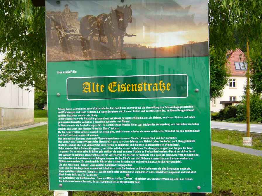 Von Schmiedeberg-Buschmühle verläuft der Wanderweg an der Eisenstraße in den Hochwald weiter. In Luchau verlassen Sie die Eisenstraße und wandern nach Reinhardtgrimma. Durch die Reinhardtsgrimmaer Heide führt der Wanderweg schließlich bis Schlottwitz im Müglitztal. |